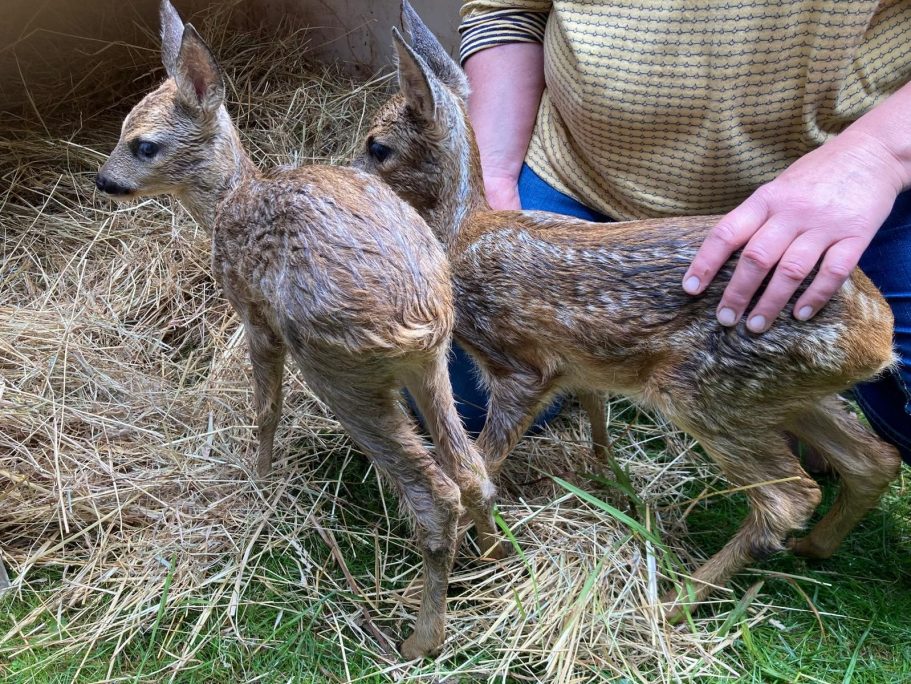 Zwei Rehkitze nach Verkehrsunfall im strömenden Regen gerettet